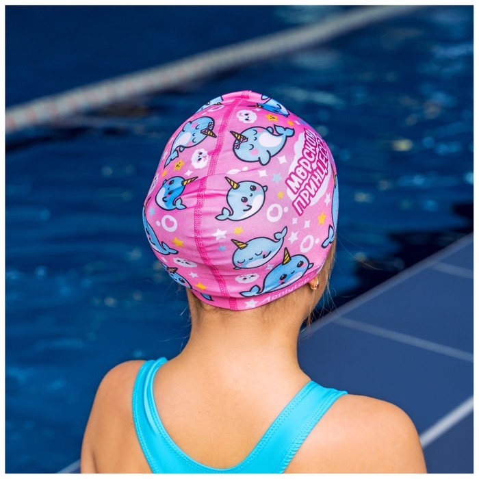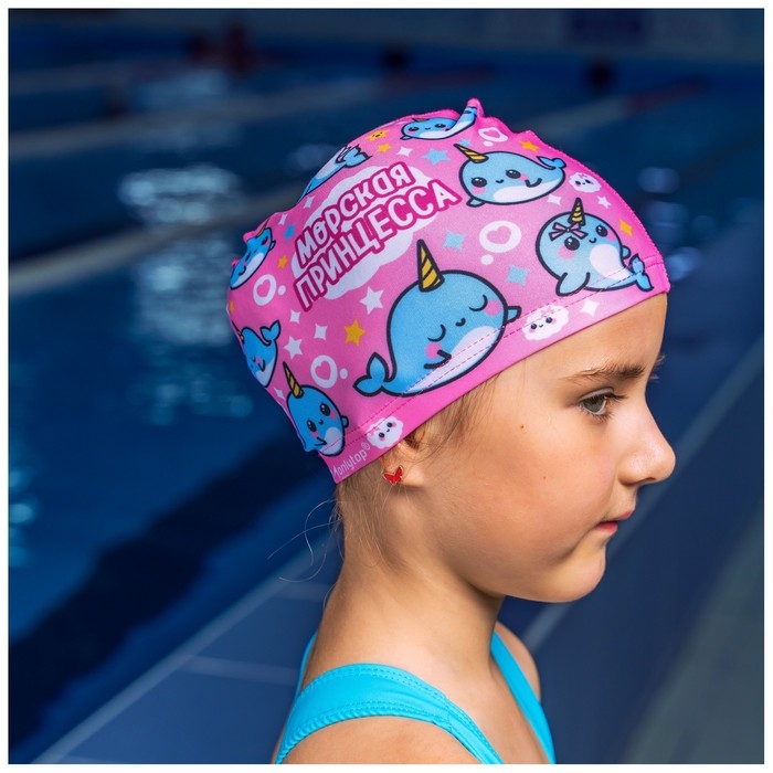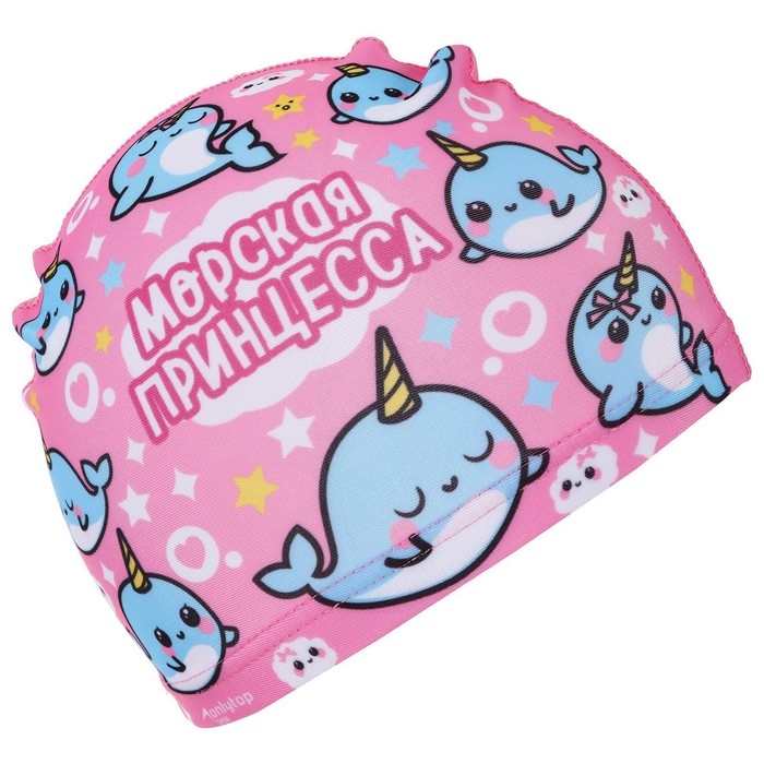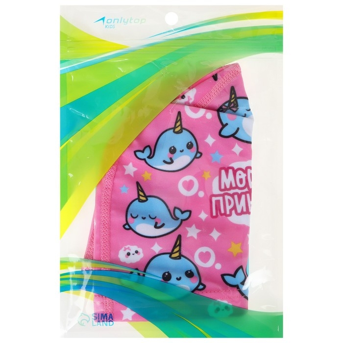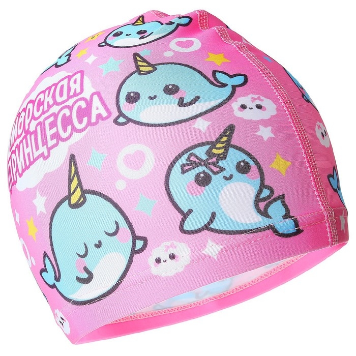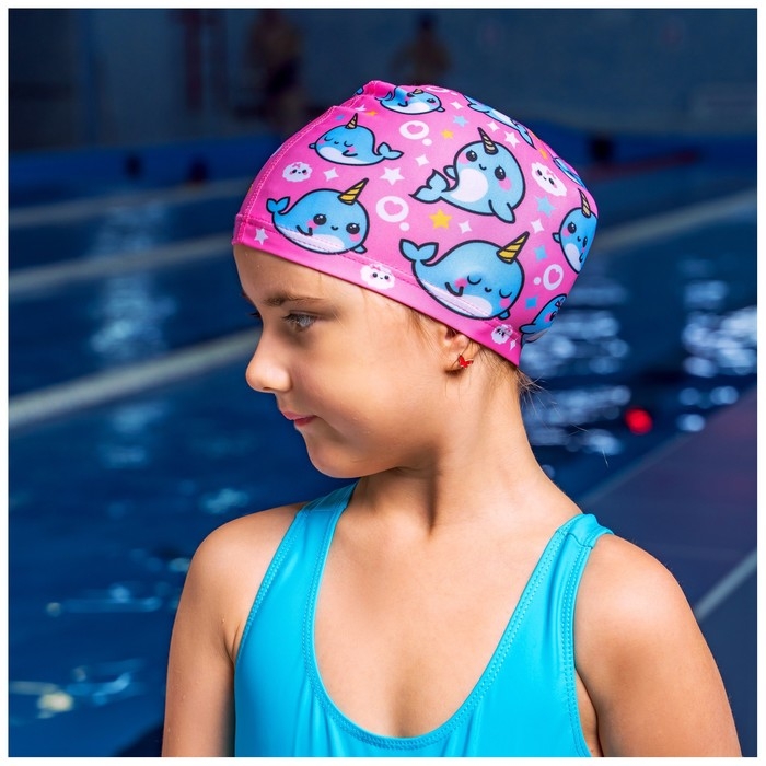 Шапочка для плавания детская ONLYTOP «Нарвалы», тканевая, обхват 46-52 см