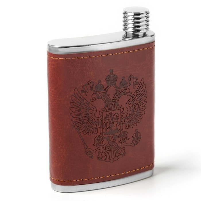Фляжка для алкоголя и воды "Герб", нержавеющая сталь, подарочная, армейская, 120 мл, 4 oz