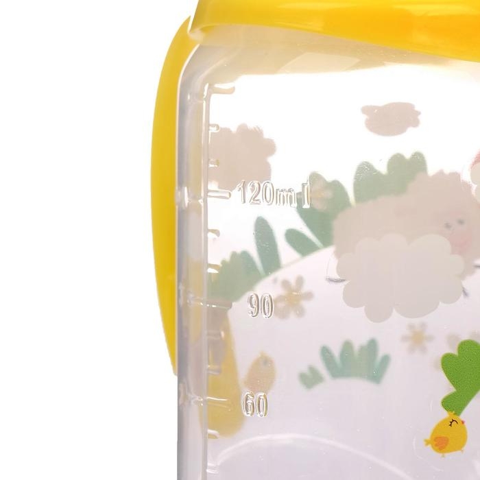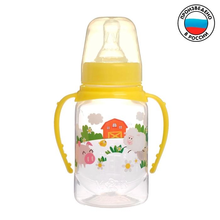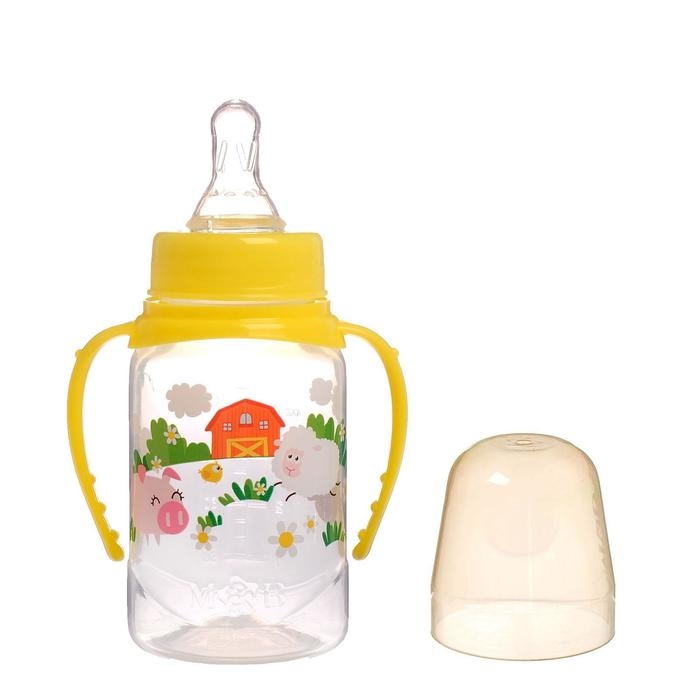 Бутылочка для кормления «Весёлая ферма», классическое горло, от 0 мес, с ручками, 150 мл., от 0 мес, цвет жёлтый
