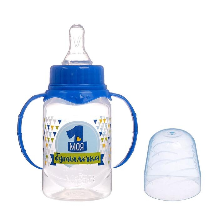 Бутылочка для кормления с ручками «Моя первая бутылочка», классическое горло, 150 мл., от 0 мес., цвет синий