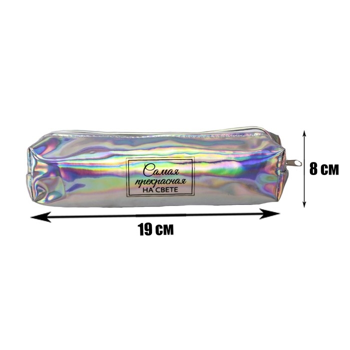 Пенал мягкий 1 отделение, 80 х 190 х 30 мм, кожзам зеркальный "Самая прекрасная на свете" серебристый/перламутр