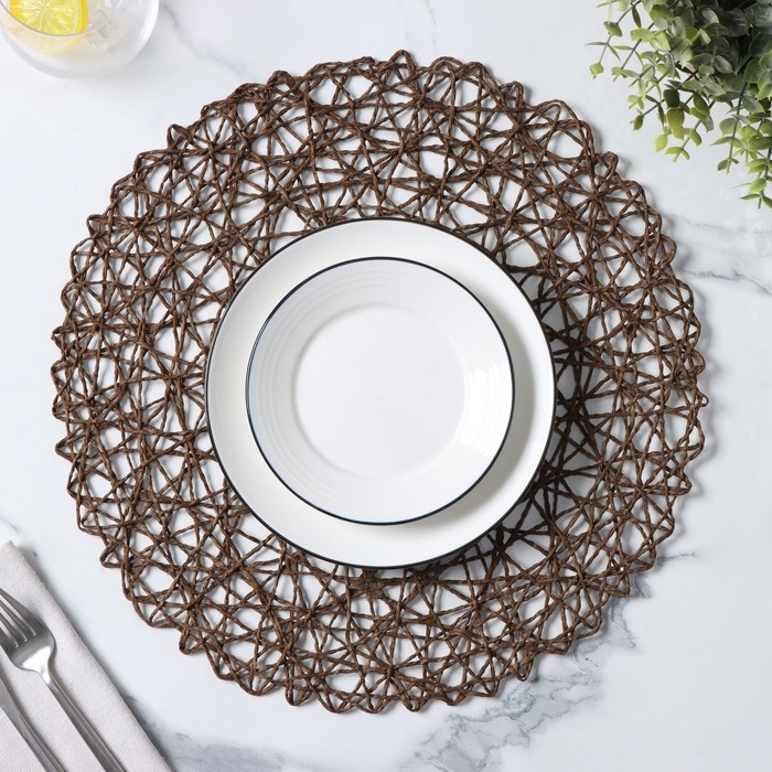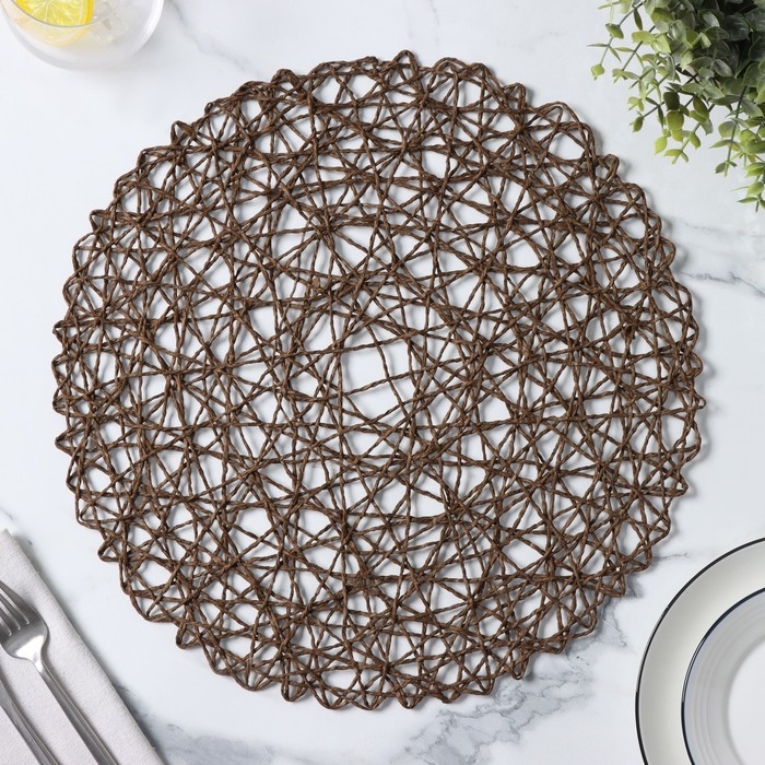 Салфетка сервировочная на стол Доляна «Одуванчик», d=38 см, цвет коричневый