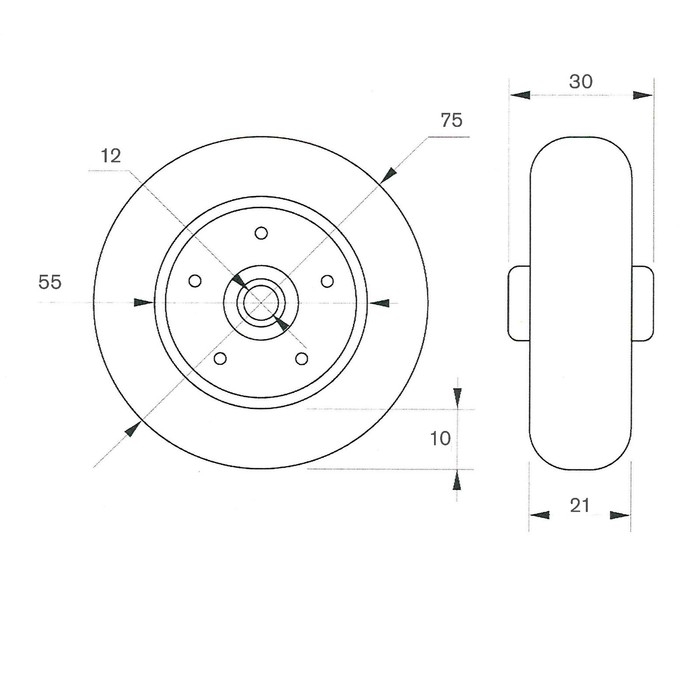 Колесо мебельное CAPPIO d=75, покрытие TPR