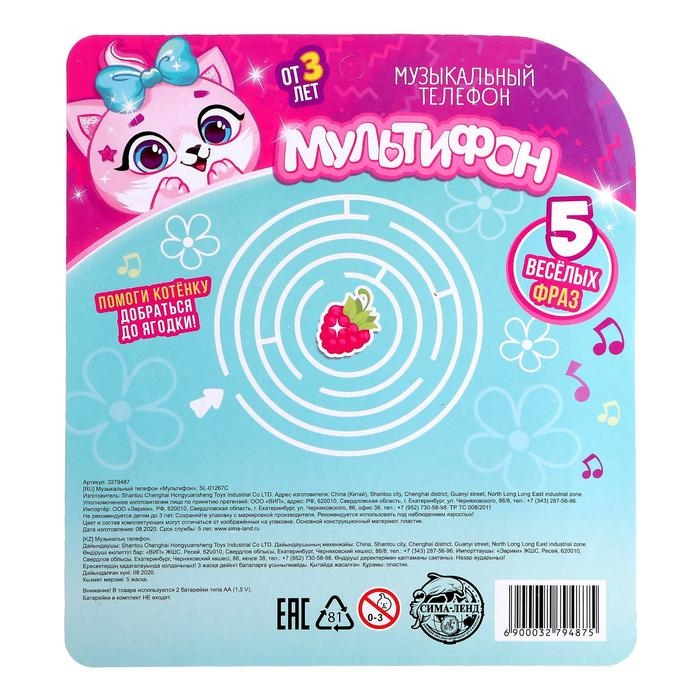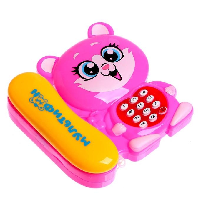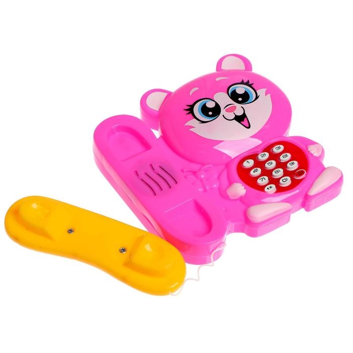 Музыкальный телефончик «Котёнок», русская озвучка, работает от батареек, цвет розовый
