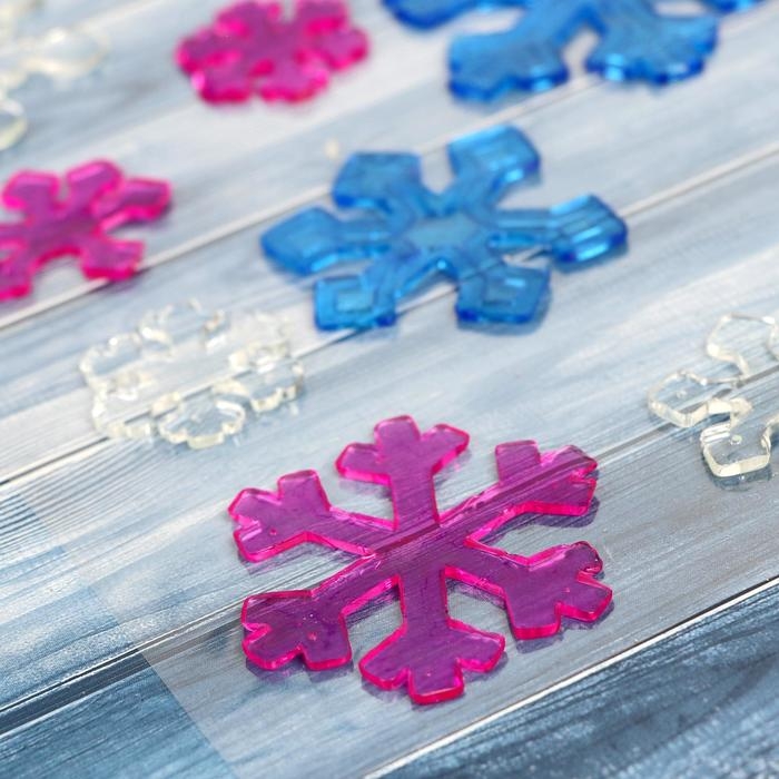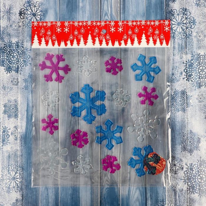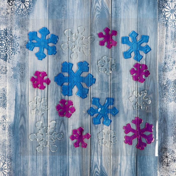 Наклейка на стекло "Снежинки угловатые" (набор 15 шт) 24х24 см, розовый синий прозрачный