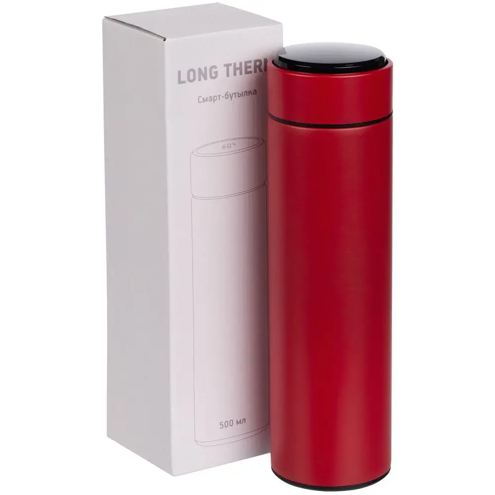 Смарт-бутылка с заменяемой батарейкой Long Therm Soft Touch, красная