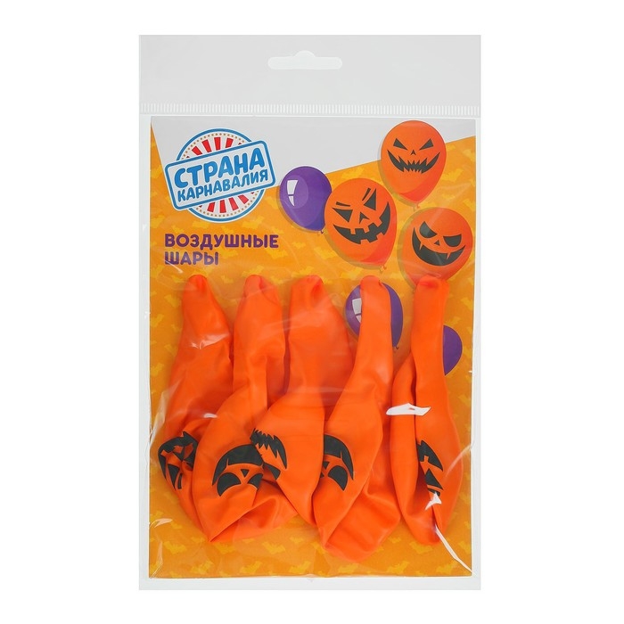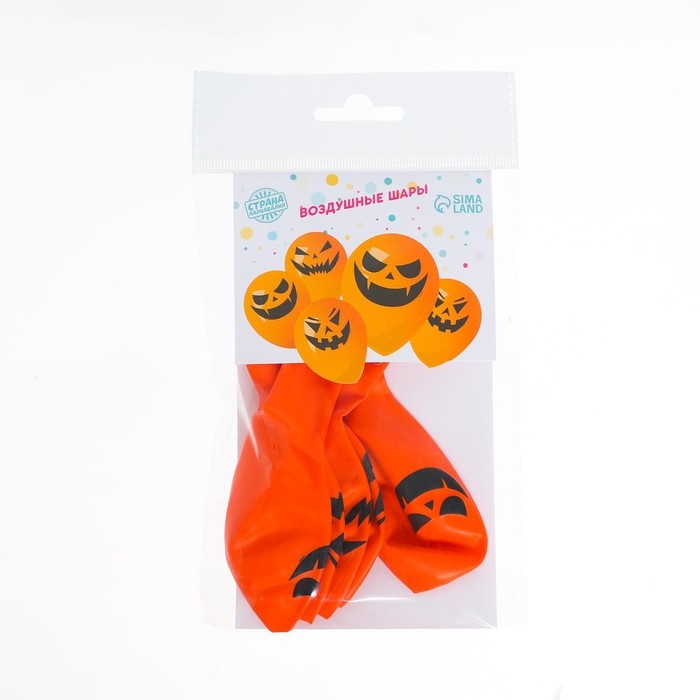 Воздушный шар латексный 12" «Страшные тыквы», 5 шт., МИКС