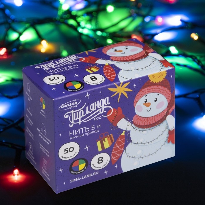 Гирлянда «Нить» 5 м, IP20, тёмная нить, 50 LED, свечение мульти, 8 режимов, 220 В