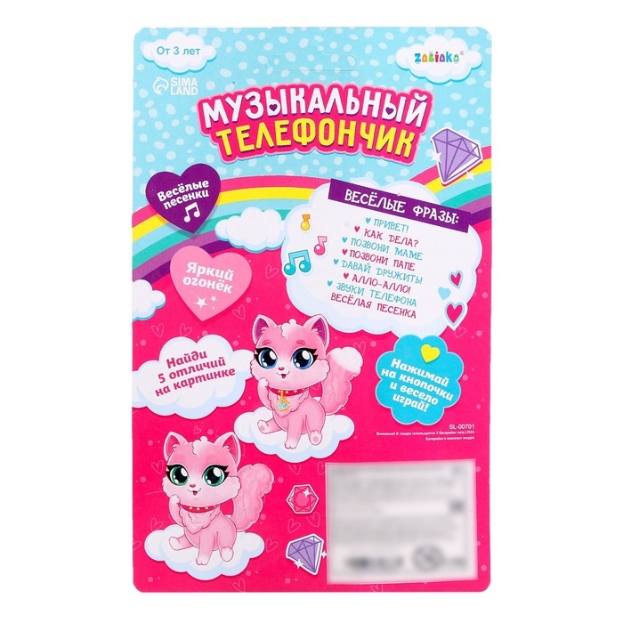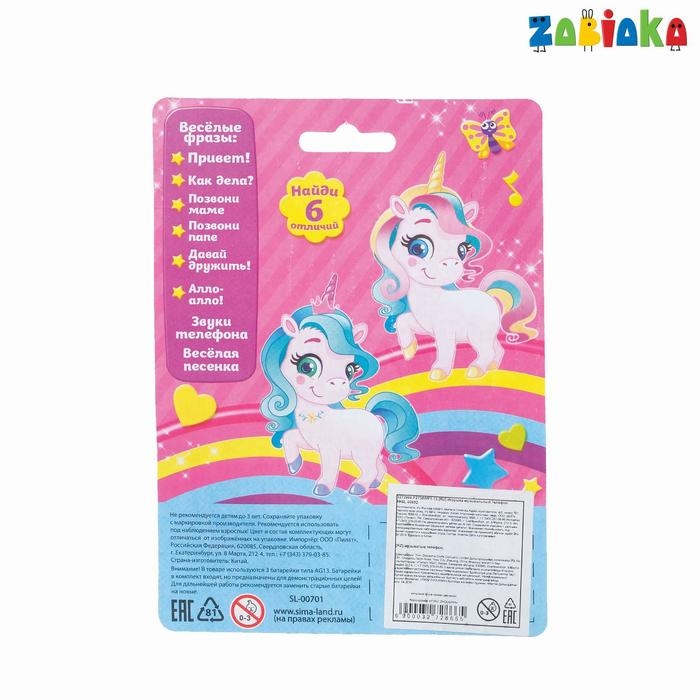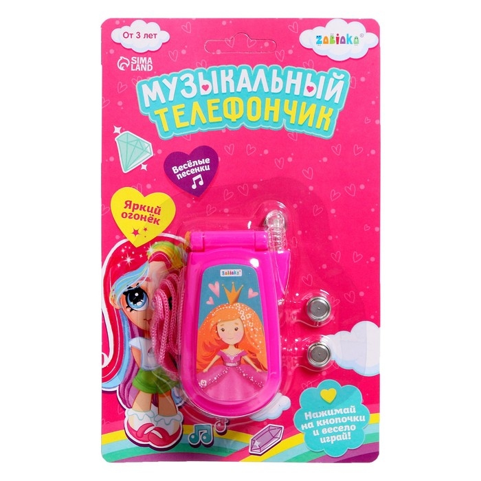 Музыкальный телефончик «Принцесса», русская озвучка, световые эффекты, работает от батареек, МИКС