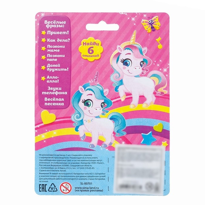 Яркий огонёк и картинки привлекут внимание ребёнка. Телефончик можно носить на шее. Есть верёвочка.