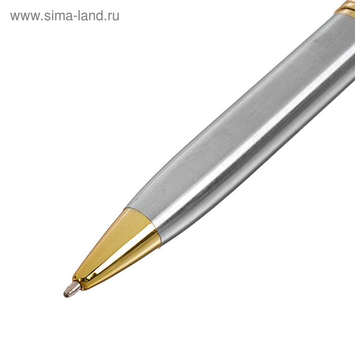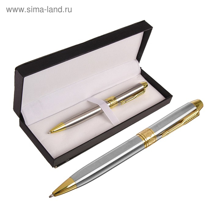 Ручка подарочная, шариковая "Стиль" в кожзам футляре, поворотная, серебристо-золотистый корпус