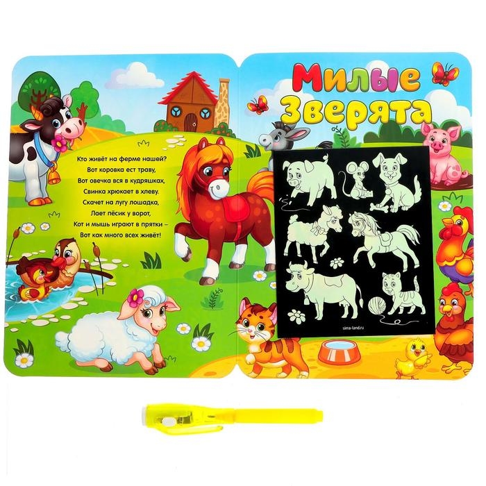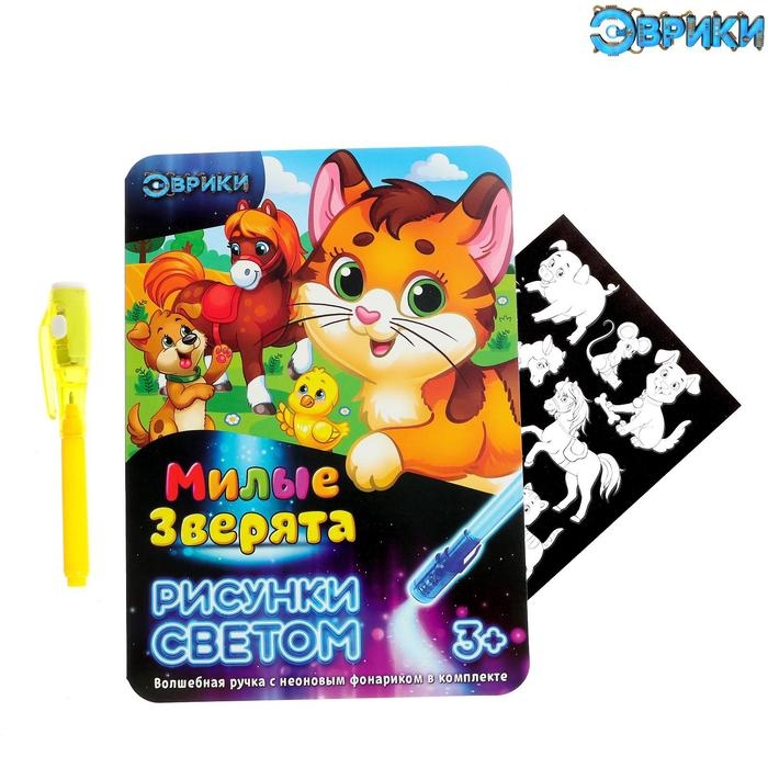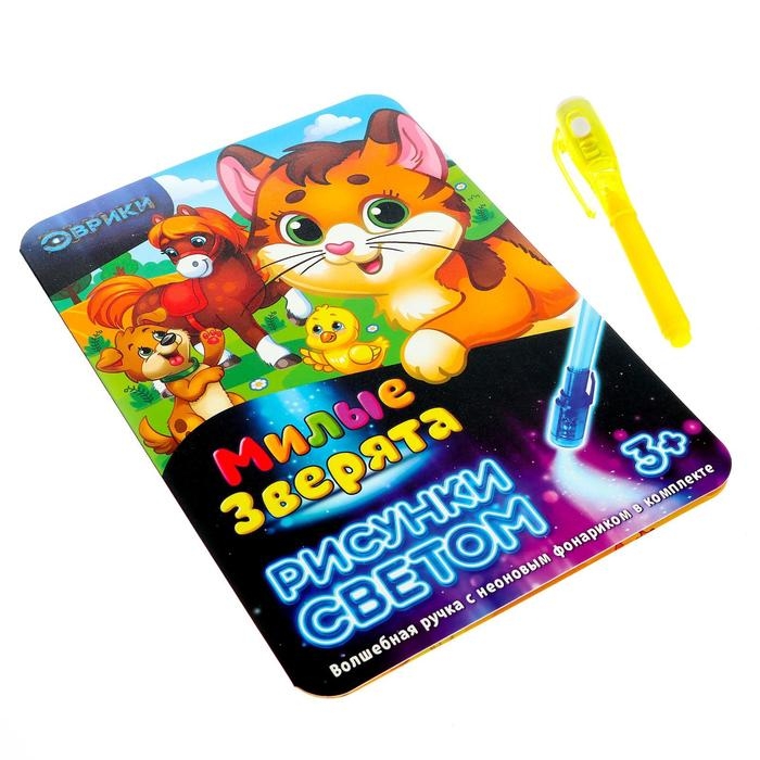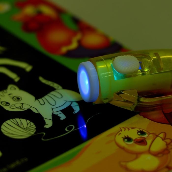 Набор для рисования светом «Милые зверята», ручка с фонариком и невидимыми чернилами