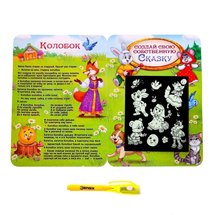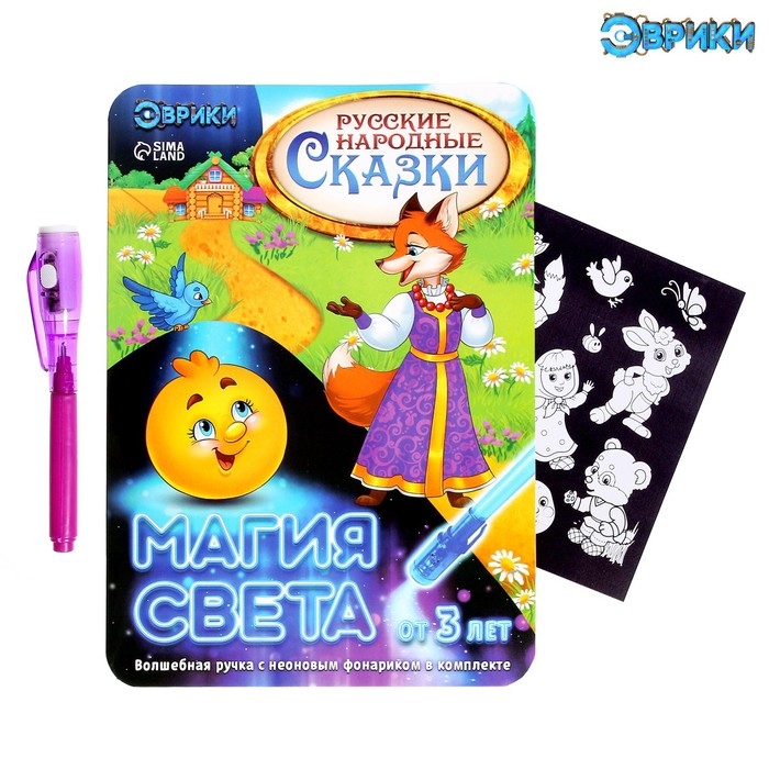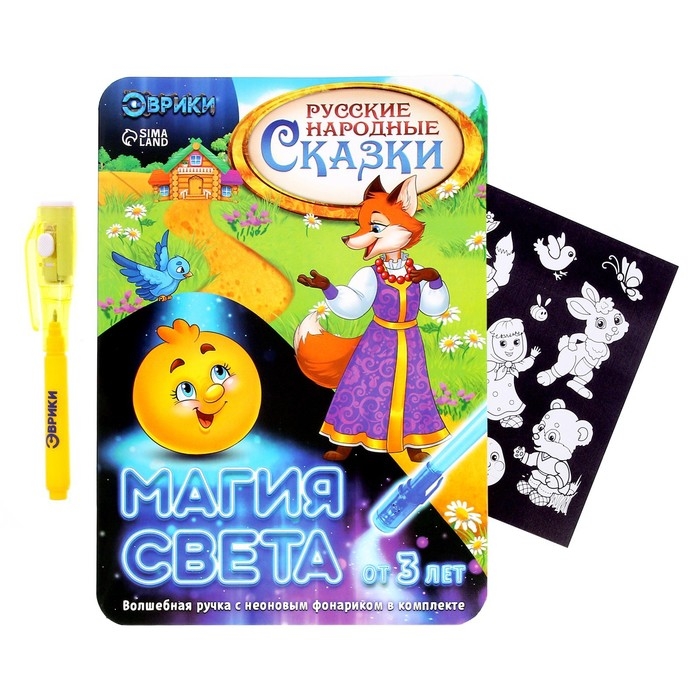 Набор для рисования светом «Русские народные сказки», ручка с фонариком и невидимыми чернилами