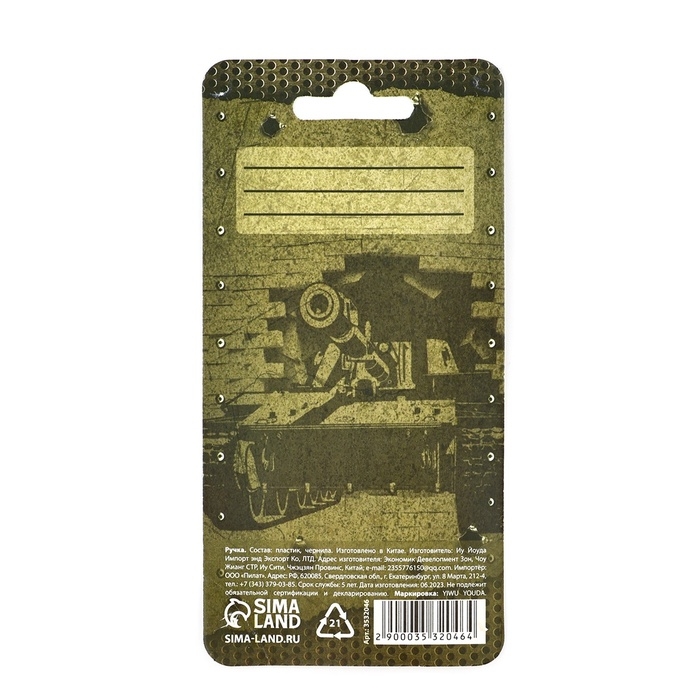 Ручка прикол шариковая синяя паста танк «23 февраля» на подложке
