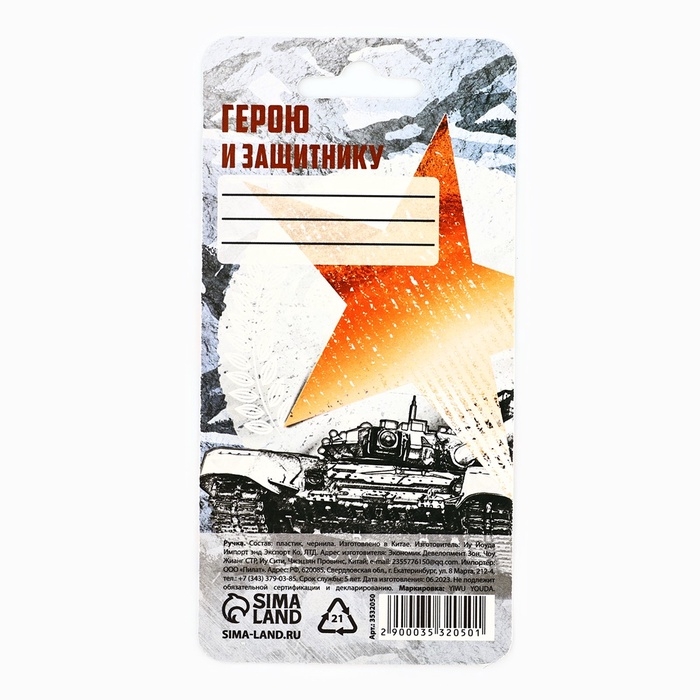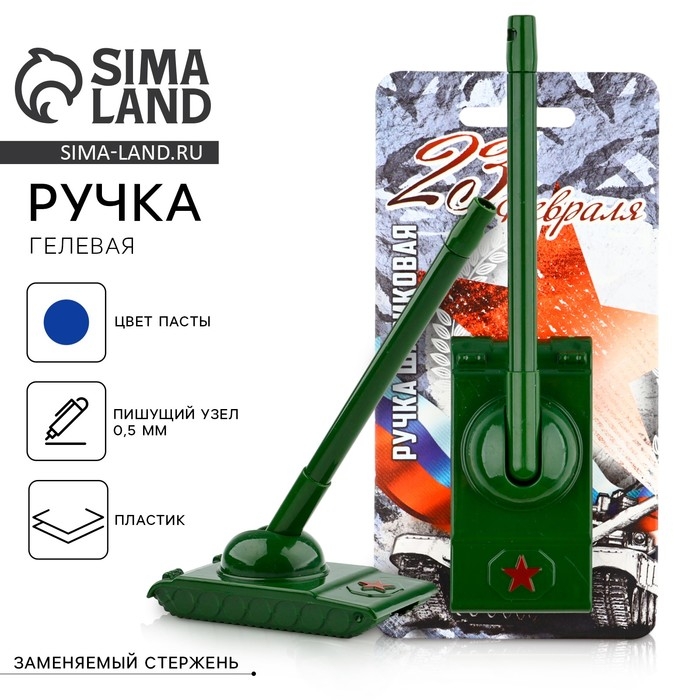 Ручка прикол шариковая синяя паста танк «23 февраля» на подложке