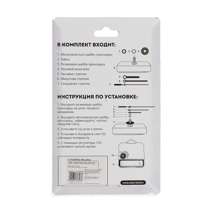 Часовой механизм со стрелками "Соломон-6", плавный ход, шток 12 мм, стрелки 70/100/125 мм