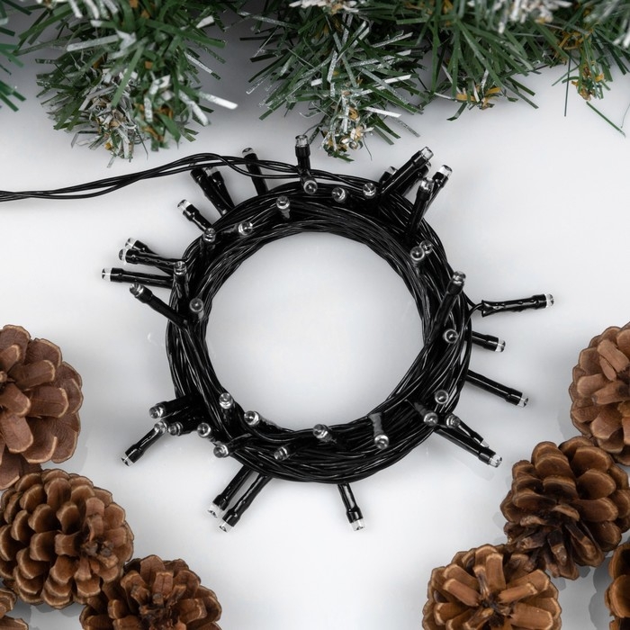 Гирлянда «Нить» 5 м, IP20, тёмная нить, 50 LED, свечение зелёное, 8 режимов, 220 В