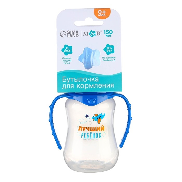 Бутылочка для кормления «Лучший ребёнок», классическое горло, приталенная, с ручками, 150 мл., от 0 мес., цвет синий