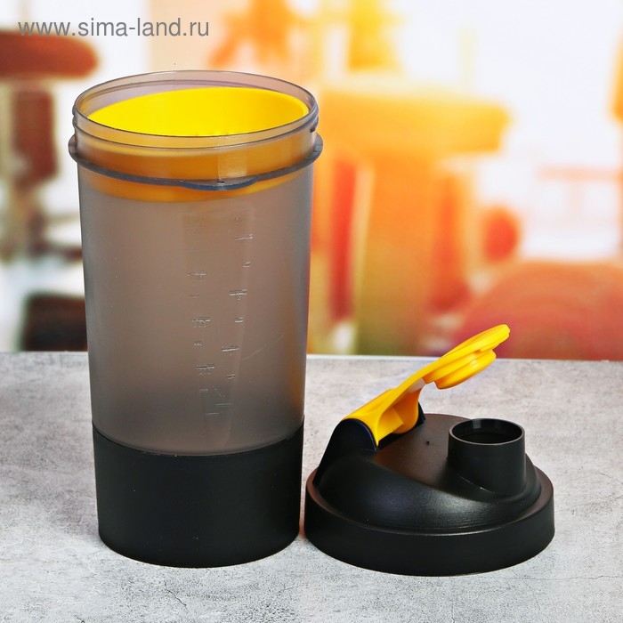 Шейкер спортивный с чашей под протеин чёрный, 500 мл