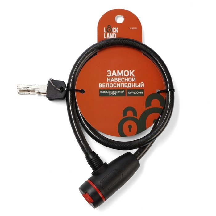Замок навесной велосипедный LOCKLAND, 10х800 мм, перфорированный ключ с пластиковой ручкой