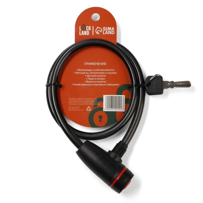 Замок навесной велосипедный LOCKLAND, 12х1000 мм, английский ключ с пластиковой ручкой