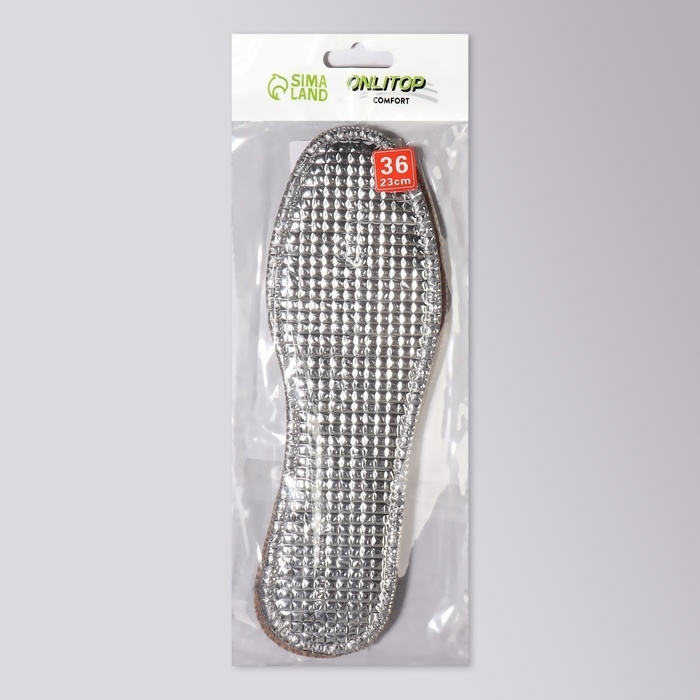 Стельки для обуви, утеплённые, двухслойные, фольгированные, окантовка, р-р RU 34,5 (р-р Пр-ля 36), 23 см, пара, цвет серый