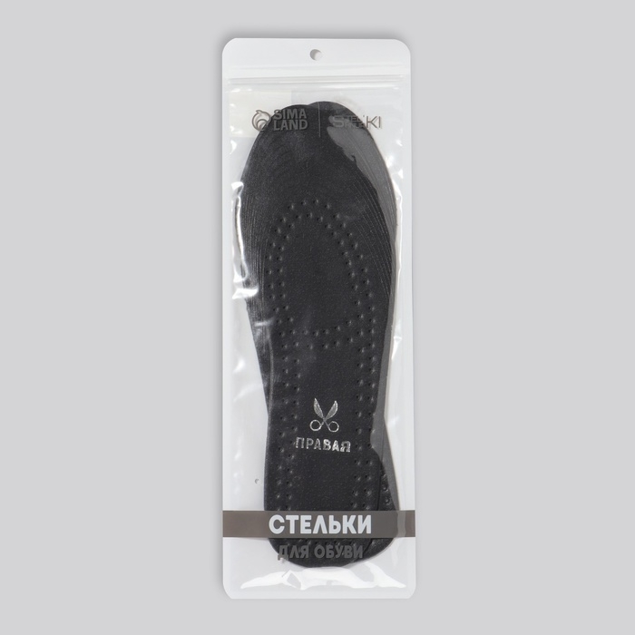 Стельки для обуви, универсальные, дышащие, р-р RU до 44 (р-р Пр-ля до 46), 28 см, пара, чёрный