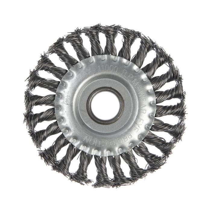 Щетка металлическая для УШМ ТУНДРА, крученая проволока, плоская, посадка 22 мм, 100 мм