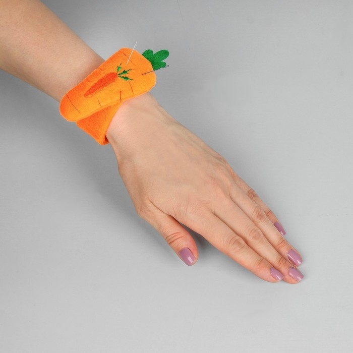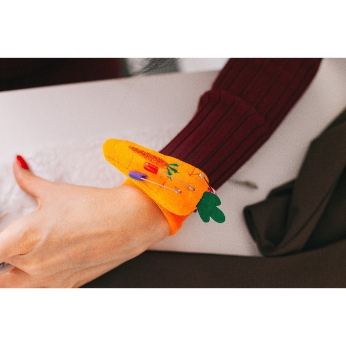 Милая игольница на браслете поможет собрать все иголки и булавки в одном месте — вам не придётся отвлекаться на поиски острых помощниц. Игольница хорошо фиксируется на руке и не сползает во время работы. Мягкий аксессуар в виде морковки сэкономит ваше время и нервы и порадует очаровательным дизайном.