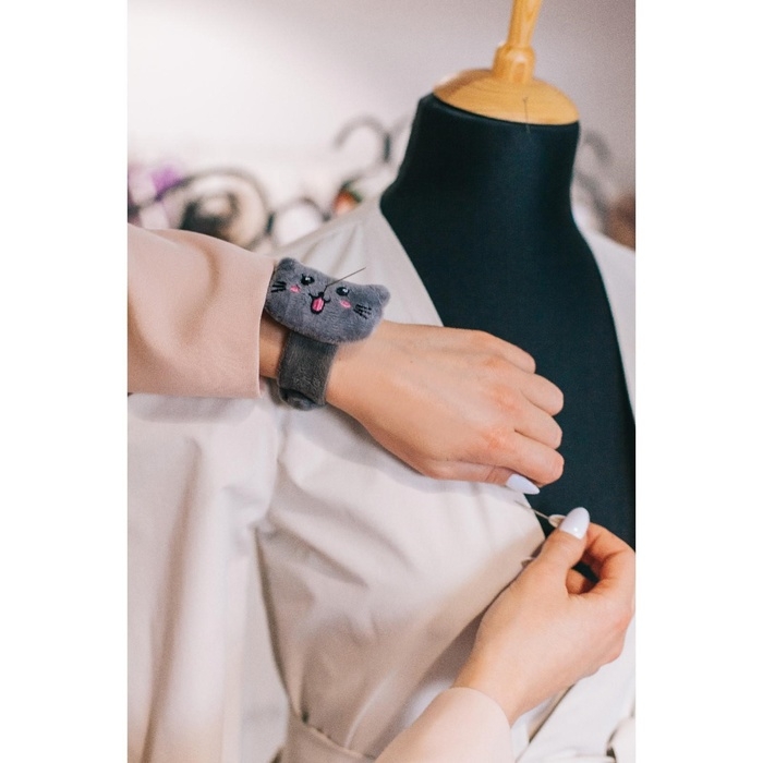 Милая игольница на браслете поможет собрать все иголки и булавки в одном месте — вам не придётся отвлекаться на поиски острых помощниц. Игольница хорошо фиксируется на руке и не сползает во время работы. Мягкий аксессуар в виде кошечки сэкономит ваше время и нервы и порадует очаровательным дизайном.