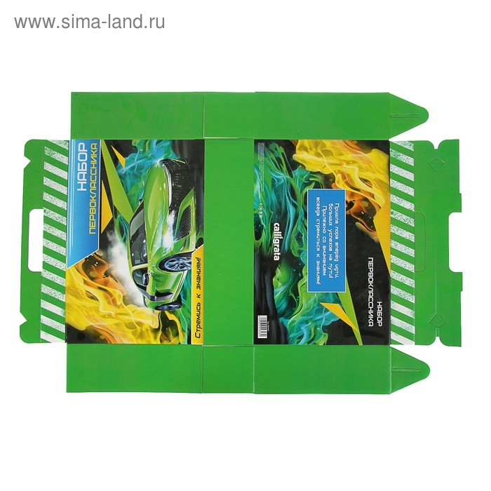 Красочная и яркая упаковка всегда создает праздничное настроение! Простые канцтовары в такой коробке станут для будущего первоклассника настоящим сокровищем. Прочная упаковка из картона не порвётся под тяжестью комплекта канцтоваров. Коробка «Набор первоклассника. Авто» продаётся в разложенном виде, легко и быстро складывается по изгибам. Верхняя часть имеет прорезь-ручку. Размер в сложенном виде: 34,5 см х 27 см х 8 см.
