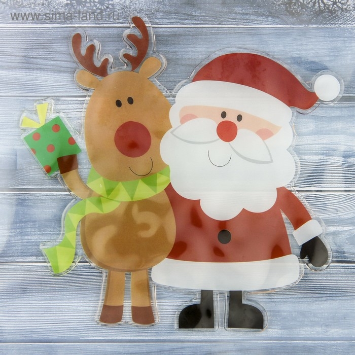 Наклейка на стекло "Дед Мороз с оленем" 16,5х16,5 см