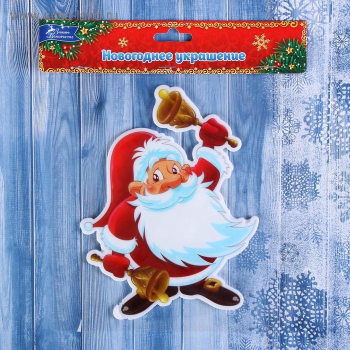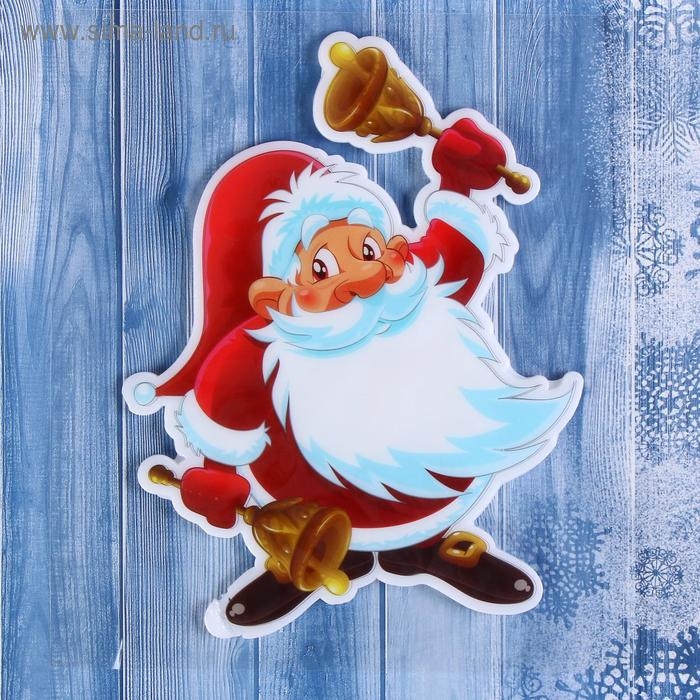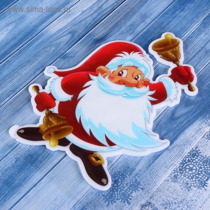 Наклейка на стекло "Дед Мороз с колокольчиками" 13,5х17,5 см, красный