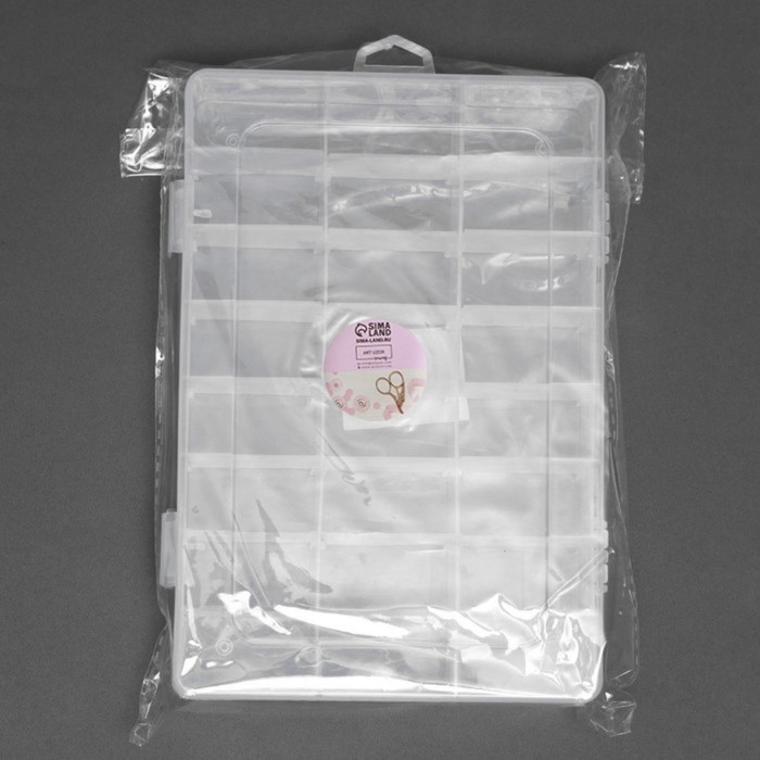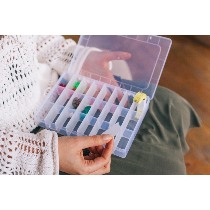 Органайзер для рукоделия, со съёмными ячейками, 24 отделения, 19,5 × 13,5 × 3,5 см, цвет прозрачный