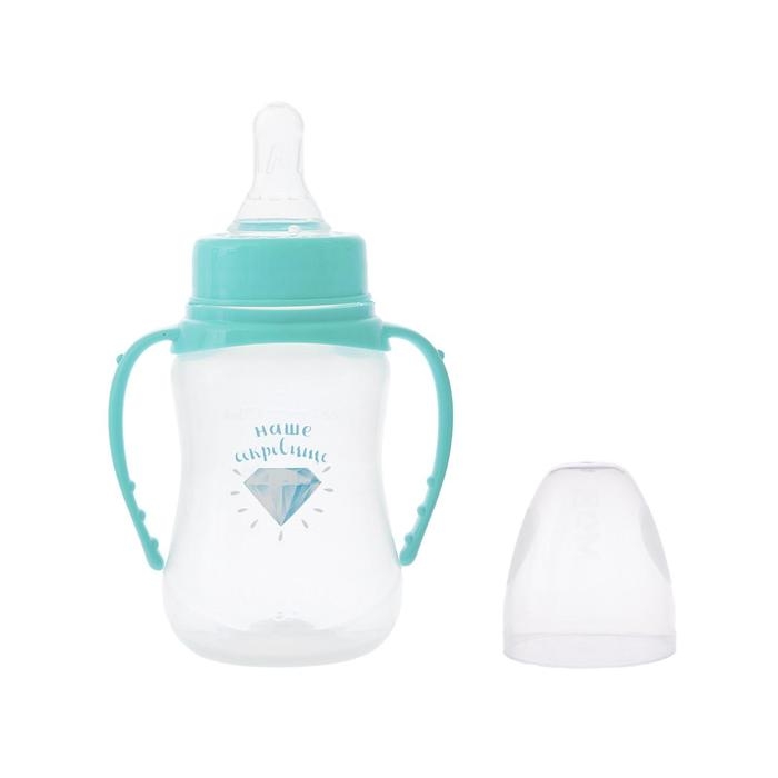 Бутылочка для кормления «Наше сокровище», классическое горло, приталенная, с ручками, 150 мл., от 0 мес., цвет бирюзовый