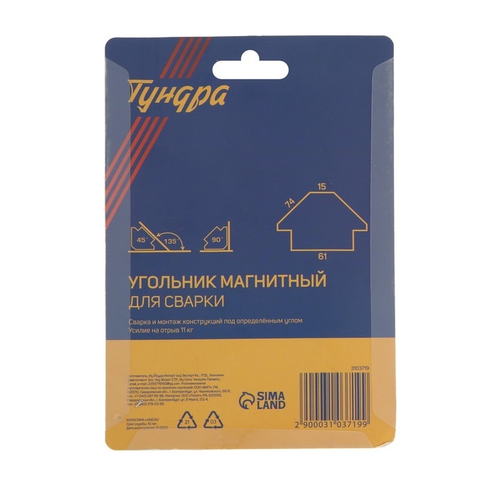 Магнитный угольник для сварки ТУНДРА, 45,90,135°, усилие на отрыв 11 кг