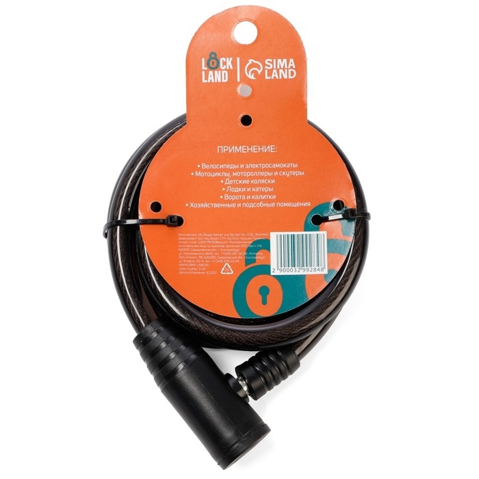 Замок навесной велосипедный LOCKLAND, 12х1000 мм, английский ключ с пластиковой ручкой