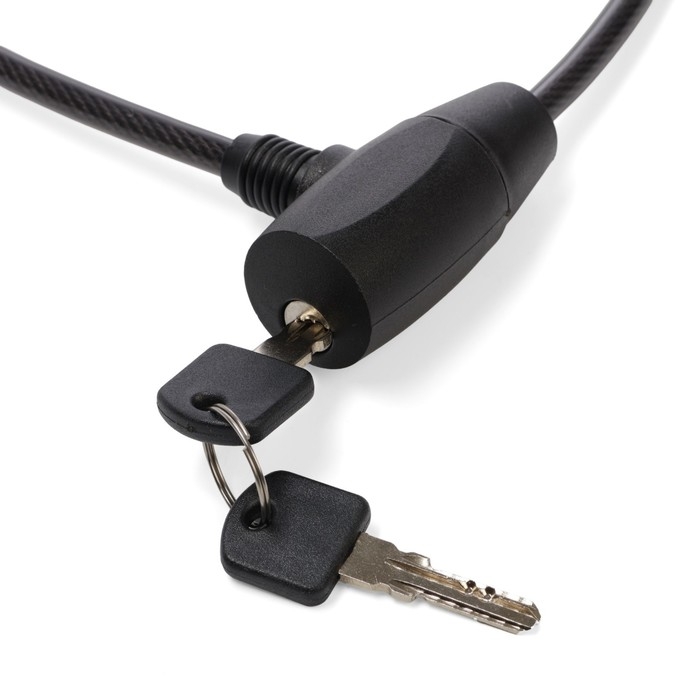 Замок предназначен для защиты от угона велосипедов, самокатов, колясок, мотоциклов, скутеров. Оплетка из ПВХ защищает трос от влаги.