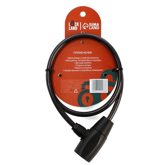 Замок навесной велосипедный LOCKLAND, 12х1000 мм, английский ключ с пластиковой ручкой