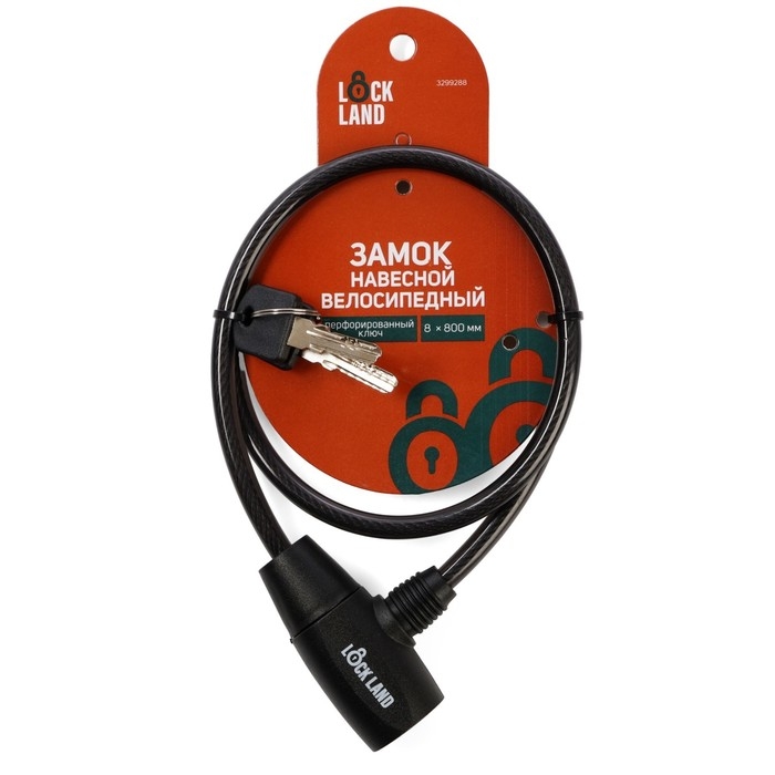 Замок навесной велосипедный LOCKLAND, 8х800 мм, перфорированный ключ с пластиковой ручкой