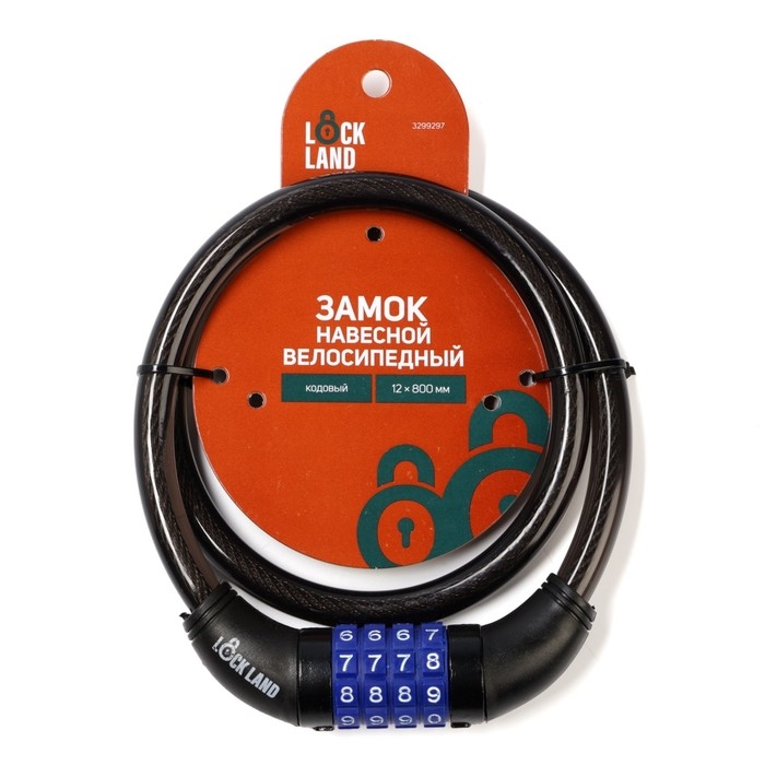 Замок навесной велосипедный LOCKLAND, кодовый, 12х800 мм