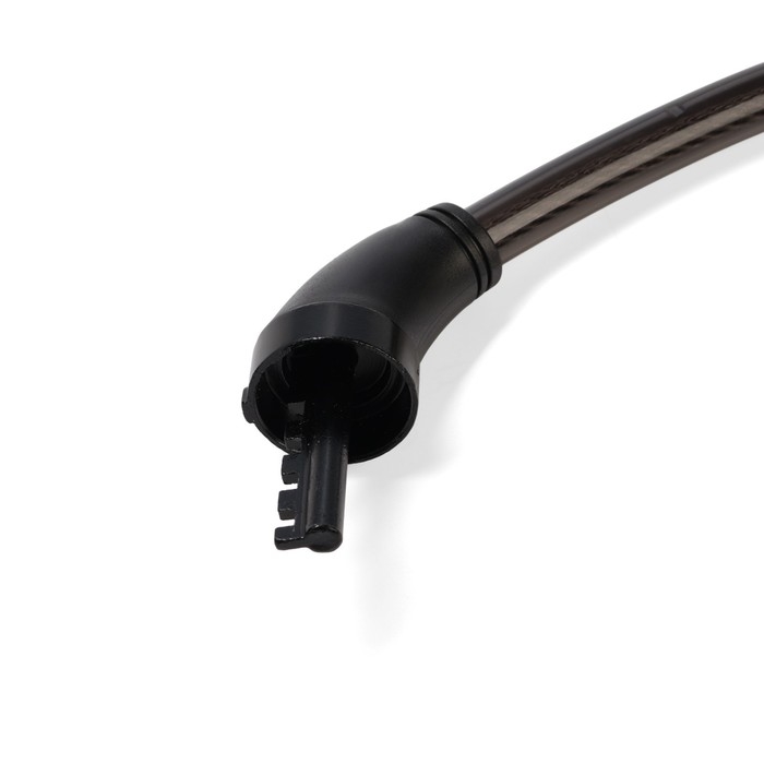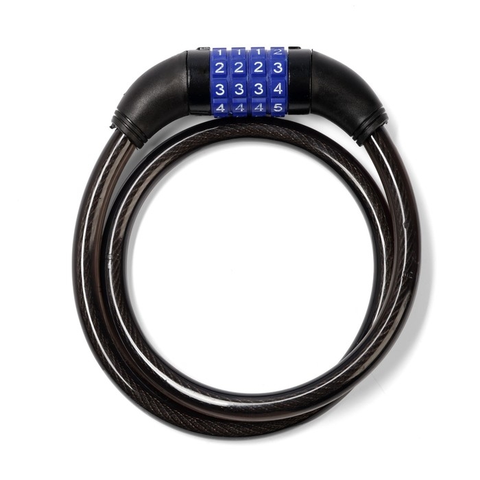 Замок предназначен для защиты от угона велосипедов, самокатов, колясок, мотоциклов, скутеров. Оплетка из ПВХ защищает трос от влаги.