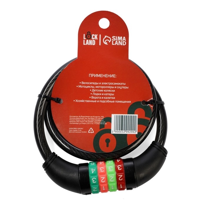 Замок навесной велосипедный LOCKLAND, кодовый, 10х650 мм