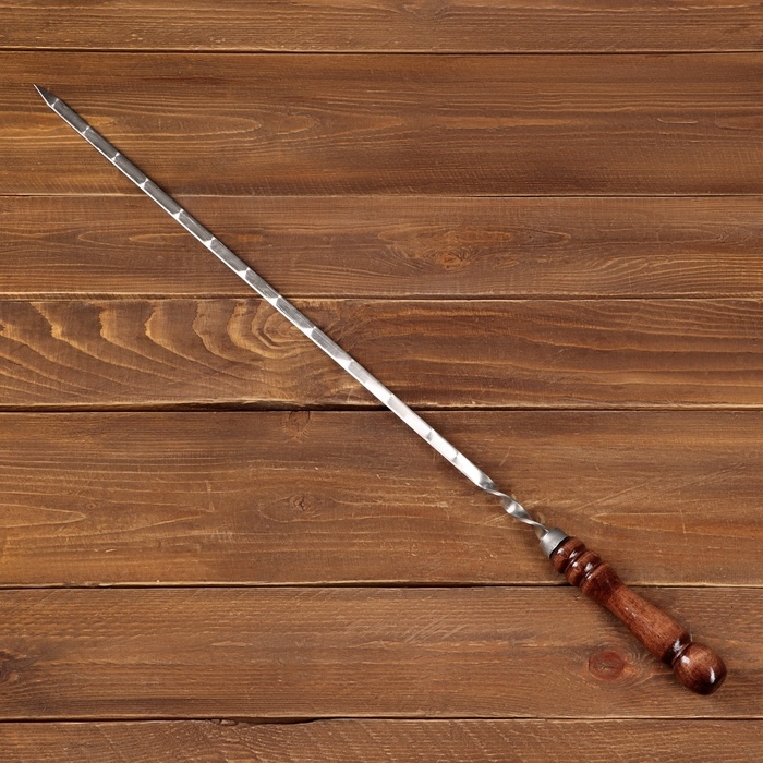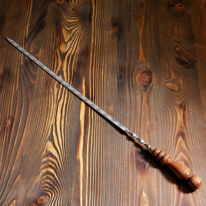 Шампур с деревянной ручкой, рабочая длина - 50 см, ширина - 10 мм, толщина - 3 мм с узором