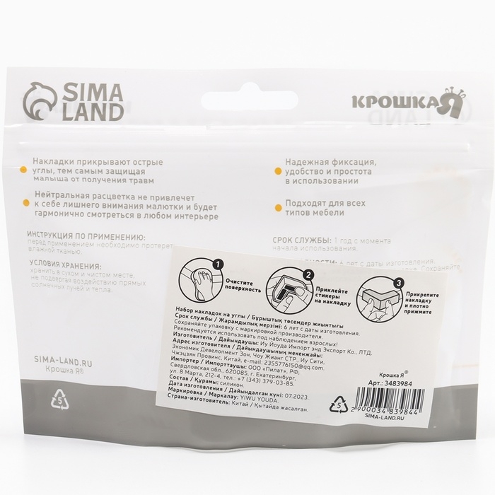Защитные накладки на углы, набор 6 шт., силикон, Крошка Я