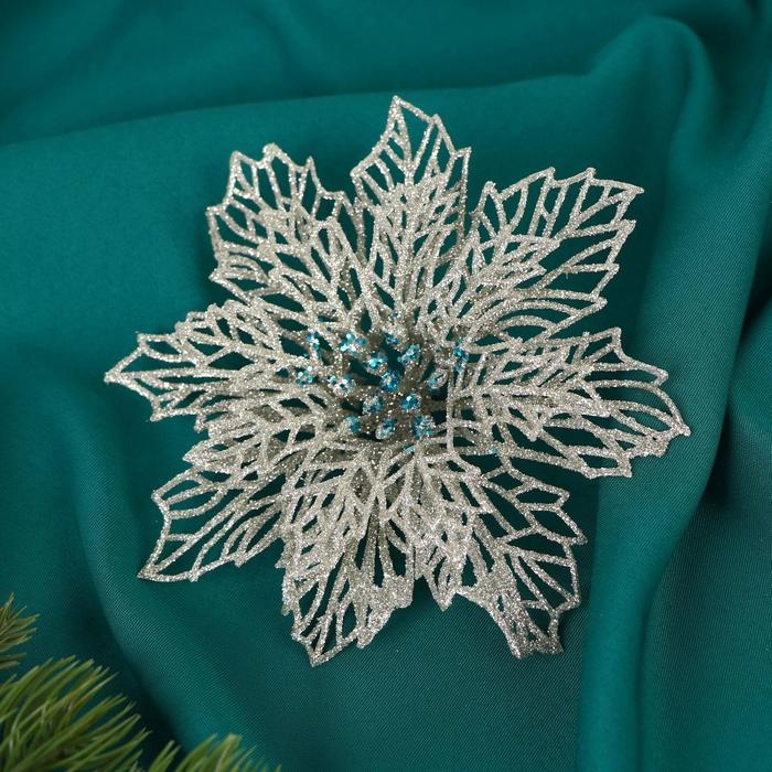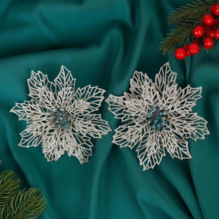 Украшение ёлочное "Ажурный цветок" (набор 2 шт) 14 см, серебро