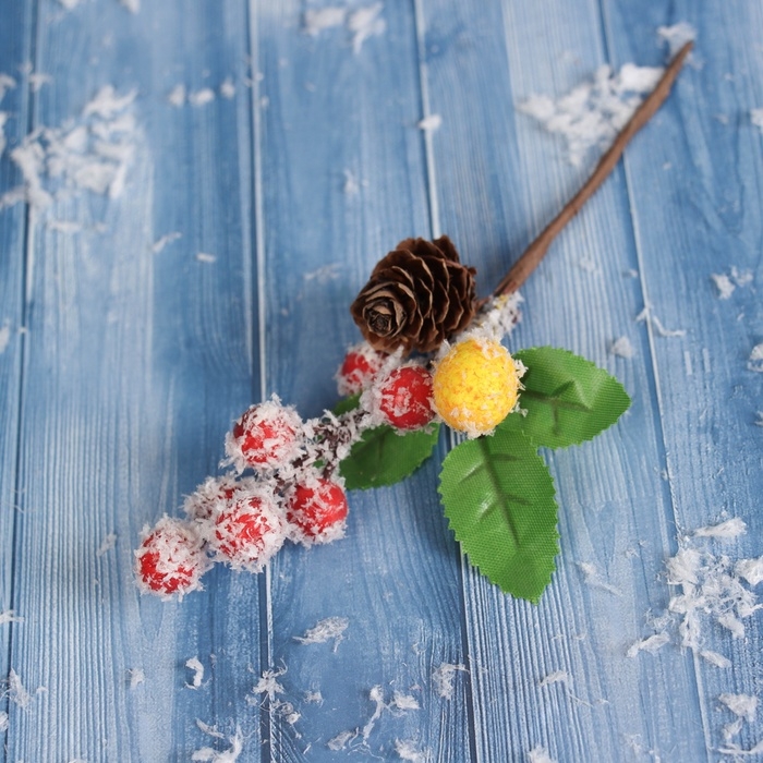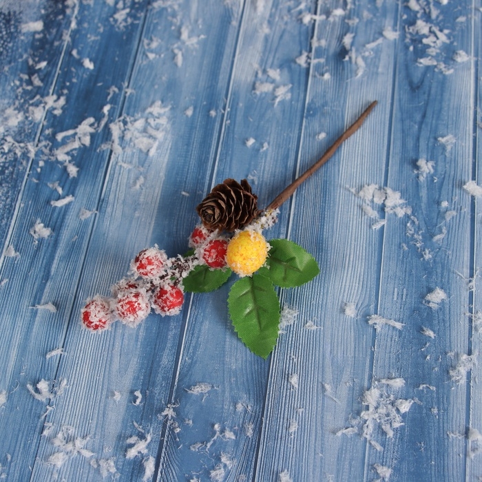 Декор "Зимние грезы" красные желтая ягодки, 15 см