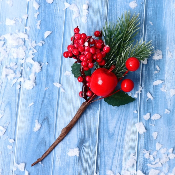Декор "Зимние грезы" яблоко красная калина, 17 см
