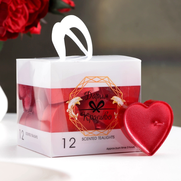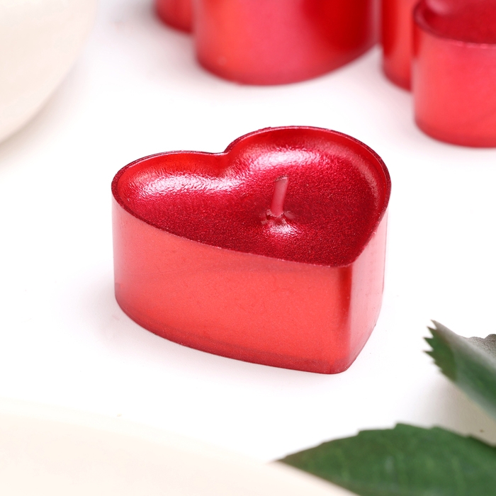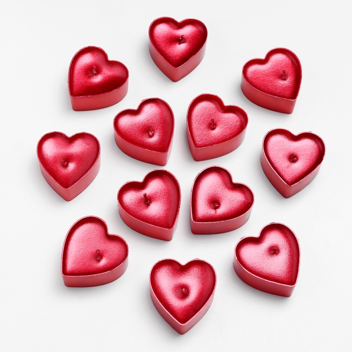 Набор свечей в гильзе "Сердце", 12 шт, рубиновый металлик