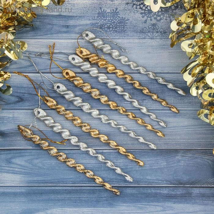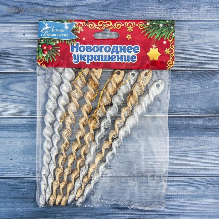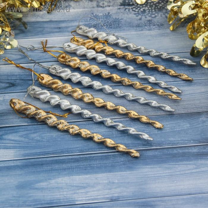 Украшение ёлочное "Витые сосульки" (набор 8 шт) 12 см, серебро золото